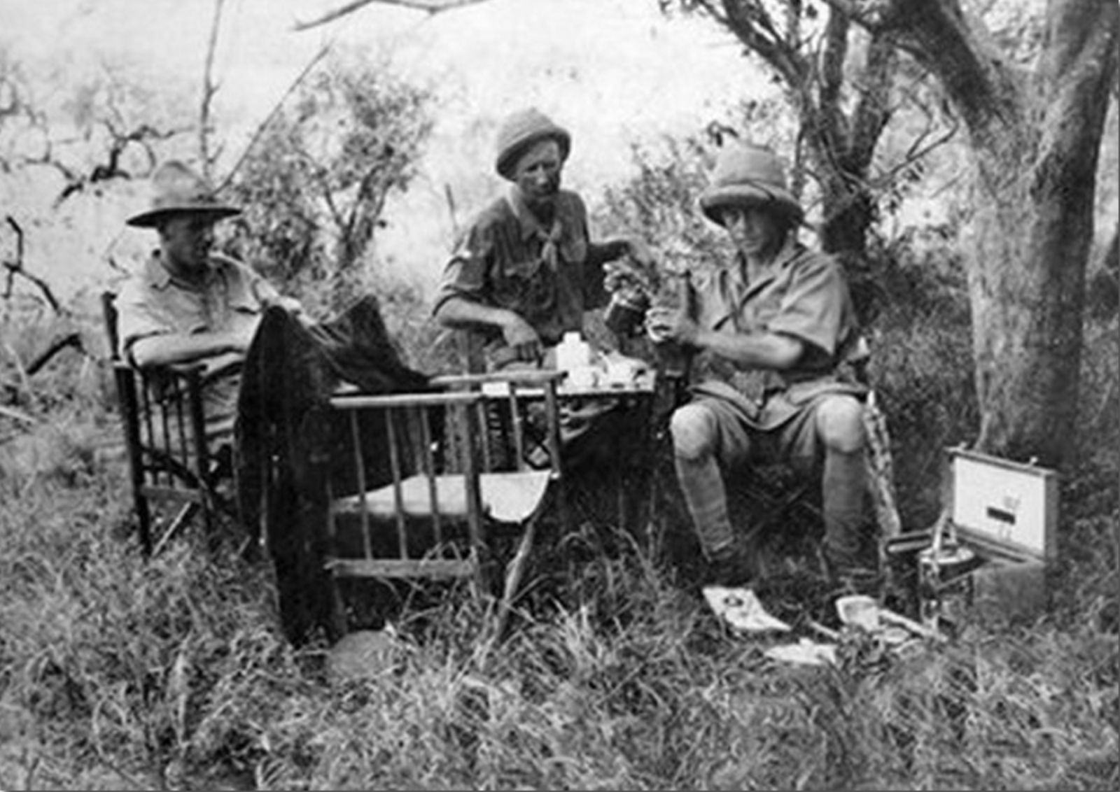 Well, when Burt arrived he recognised George from the previous visit, and assumed that the Prince would go with him, so they proceeded to load the car with light suitcases, cameras, field glasses, mackintoshes, etc. Then one of the big guns arrived on the scene and thought the Prince would probably like to travel in the Armstrong Siddeley saloon so they transferred the kit from George's Crossley to the Armstrong while "Smith" stiffened up, turned very white and tried to conceal his overwhelming joy. Then the Prince himself strolled casually on the scene. I had never seen him before but I recognised him immediately from his photographs as he was exactly like them. I can best describe my first impression of him by using a feminine expression and saying that he looked a "perfect dear". I was particularly struck by his youthful appearance, his slight figure and his "don't-give-a-damn for anybody or anything" expression. He was dressed, not in a resplendent uniform and plumed helmet, but in safari shorts and stockings, a very yellow shirt with sleeves tolled up to the elbows, a nondescript pullover, no coat, a funny little sun helmet and a stubby pipe. Even seeing the man as he was there and not knowing who he was, there would have been an air of personality about him that would have been very impressive. Seeing him for the first time thus clad, and knowing who he was, it was borne upon me very strongly (who am not unduly prejudiced) that a monarchy is really worth while.